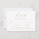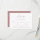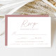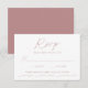 Enkelt, elegant bröllop OSA kort med ett dammigt ro, handskrivet skript blandat med modern text mot en vit bakgrund. Anpassa de minimalistiska bröllopen OSA med önskat svarsdatum, anpassningsbarna accepterar/avböjer formuleringar och måltider. Korten för chic dammiga ro bröllop OSA är perfektens val för det moderna bröllop.