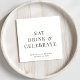 Modern blöjor för din bröllopsmottagning, repetitionsmiddag, förlovningsfester, par-duschar och andra bröllop-evenemang med "Eat Drink & Celebrate", ditt första namn och ditt bröllop-datum i elegant-serif-typografi.