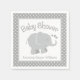 Napkin för babydusch för snyggt och söt anpassningsbar har en undermålig liten nyfödd elefantkalv från baby med hjärtformade stänk och en mönstrad bakgrund med polka dots. Könsneutrala färg-schemat för grått och vitt - färger är perfekt för att välkomna pojke eller flicka. Anpassa anpassningsbarna.