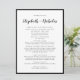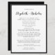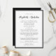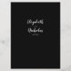 Modern Elegance Black and White Wedding Reception and Menu har par’ namn på ett vackert kalligrafi och datum i ett traditionellt serif-teckensnitt på ena sidan. Den omvända sidan har ett minsta svart gräns i ordning med mottagningshändelser, högtalare och menybeskrivningar. Anpassa med information om bröllopsdagen. Den här utformningen finns i en rad olika format och medföljande bröllop-händelsematerial.