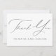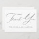 Elegant bröllop tackar dig för kortet med "Tack" i ett svart calligrafiskt skript med ditt efternamn som visas nedan. Tack vare kortet i elegant bröllop återgår du till visningen med ditt tack till anpassningsbarna och först till namn med svarta bokstäver. Utforma koordinater med vår Modern Elegance bröllop-samling.