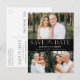 Med den här snyggten kan du berätta din bröllop-dejt och spara vykortet för datum. Utformningen innehåller tre av dina favoritfoton med förlovningen "Spara datum" som visas i vit serif och skript typsnitt mot en svart bakgrund. Anpassa framsidan av det minimalistiska spara datum meddelande genom att lägga till namn, datum och bröllop. Datumvykortets datum återställs till visning av returadress- och bröllop-information. Det enkla spara datum meddelande är perfekt för alla bröllop-teman.