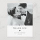 Modern Elegance Black Typography Bröllop Tack vykort | Skicka ett tack till familj och vänner för att de är en del av din speciella dag med anpassadet bröllop tack för ditt vykort. Den har minimalistisk typografi med hjärtillustration. Skriv ditt favoritfoto bröllop längst fram på vykortet och lägg till ytterligare ett foto i baksidan av vykortet. Tack för att du har vykort i andra färg.