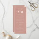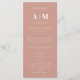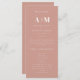Ett modernt bröllopsprogram för dammig rosa. Anpassa med all information om ceremonin i bröllop, inklusive ett tackmeddelande, initialer och bröllopsfest längst bak.