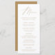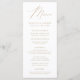 Enkel meny och elegant bröllop-meny med "Menu" som visas i ett modernt skript i guld med vit bakgrund eller färg efter eget val. Anpassa menyn guld bröllop genom att lägga till namn, bröllop datum och menyinformation. Designad att samordna med vår moderna elegance bröllop-samling.