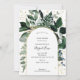 En modern elegans, botaniskt inbjudningskort för möhippan. Den har en vacker vattenfärgsgrej med en snyggt för modern beröring. I elegant är inbjudan perfekter för trädgård, skogsmark, skog, möhippa utomhus, bröllop, årsdag, vuxens födelsedag med mera.