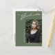 Den här moderna eleganten, som ändå är ett enkelt vykort för studenten-meddelande, har inslag av modern text som är sammanfogad med kalligrafiskript för elegant. Det enda fotot som visas i studenter visar kortets framsida, medan kortets baksida ger personlig textutrymmen för information om studenten och framtida färd. Vita skrivningar på grönten snyggt eller anpassa bakgrunden till valfri färg. Om du vill se fler artiklar som detta kan du besöka min butik här på "www.Zazzle.com/LakeViewCardCo". Tack