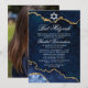 Modern Elegant Blå Guld Marmor Bat Mitzvah Foto Inbjudningar