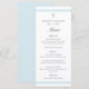 Den klassiska eleganta dopmenykortet är ett modernt, rent med pastellblå ränder och ett minimalt kors med redigerbar grå text.