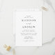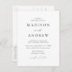 Minimalistiskt, modernt vykort för bröllopsinbjudan med dina bröllop-detaljer i svart text med calligraphy-skript-accents. Den vita bakgrunden kan ändras till en valfri färg. Anpassa baksidan av vykortet för chicens bröllopsinbjudan med din returadress, önskat svarsdatum, bröllop webbplats och instruktioner för gäster med hjälp av de textmallar som finns. Designad att samordna med vår moderna elegance bröllop-samling.