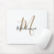 Modern Elegant Black Guld Monogram Script Girly Mouse Pad. Anpassa den här elegantens monogrammade vita musmattdesign med ditt namn och monogram från början i en typografi av chic, trendig och giftigt skript. Perfektens gåva till henne.