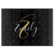 Modern Elegant Black Guld Monogram Script Namn Chic Clearboard för hennes . Monogrammed initial och namn. Contemporaryns skripttypografi. Guld svart och vit. Ändra enkelt bakgrunden till färg eller färg. Trendigets gåva till henne för kvinnor. Leta efter matchande förstagångs- och matsalar i namn, t.ex. underlägg, trasa bordstablett, trasa, servetter, serveringsbricka, kökshandduk, skärbord och även matchande första badrumstillbehör i namn som badhanddukar, duschgardiner, badmat. Steg för steg inspirationsserien finns endast på Zazzle på zazzle.com/store/KrisHarty, designad av internationell designer, Kris Harty. © 2022 Kris Harty Step by Step Inspiration