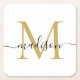 Modern Elegant Black Guld Monogram Script Namn Underlägg Papper Kvadrat