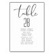 Modern Elegant Black White Bröllop-sätesdiagram Bordsnummer
