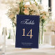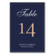 Bordsnumret Modern Elegant Navy Blue Script Bröllop. Kortet är modernt och elegant mörk blått med ett tunt gräns och ett skript i vitt och persikofärgat färg. Anpassa varje kort separat för varje bordsnummer och placera det separat i din kundvagn. Anpassa all text på kortet i bord.