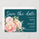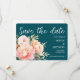 Modern Elegant Blommig Akvarell Peony Djupblå Teal Spara Datumet