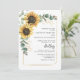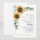 Skapa ett modernt invigningskort för solrosbröllop med den här söta mallen med vacker rustik blommigt bouquet, geometrisk guld-effekt ram, med modern enkel typografi. TIP: Matchande bröllop-svit som OSA, bröllopsprogram, banderoller, tapetik, presentkort, skyltar och andra bröllop-kök och märkre-godis finns i samlingen nedan med denna design.