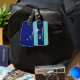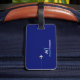Modern och elegant 2-tonsblå design för en snyggt resenär, personlig med namn och initialer och med bilden av ett vitt flygplan... blir det lätt att identifiera ditt bagage nu.