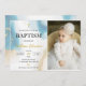 Modern Elegant Blue Baptism Photo Inbjudningar