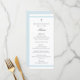 Det klassiska elegantens baptism-menykort är ett modernt, rent med pastellblått rand och ett minimum kor med redigerbar grått-text.