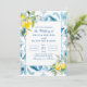 Modern Elegant Blue Tile och Lemon Bröllop Inbjudningar