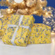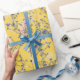 Modern Elegant Blue Wildblommor på Mustard Gult Presentpapper