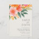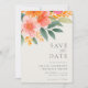 Modern elegant bröllop sparar datuminbjudan med rosa vattenfärgsaccenter för blommigt av orange.