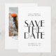 Det här moderna "save the date"-bröllopskortet har en fet minimalistisk typografi på framsidan och en fotolayout på baksidan med utrymme för din bröllopswebbplats och QR-kod. Designad för att göra ett starkt första intryck är den perfekt för att tillkännage ditt bröllop i en ren, modern stil. Anpassa kortet med era namn, bröllopsdatum, plats, favoritfoto och anpassad QR-länk. Perfekt för moderna, minimalistiska och stadsbröllop, passar detta "save the date"-kort vackert ihop med neutrala och återhållsamma brölloppskortsserier. Ett stilfullt och praktiskt sätt att dela era bröllopsdetaljer och guida gästerna till er webbplats i förväg. Finns tillgängligt både som tryckt kort och digital nedladdning.