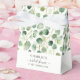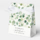 Gör din bröllopsfest extra speciell med denna vackert designade förmånspåse med eukalyptusgrönska. Med ett frodigt botaniskt vattenfärgtryck med mjuka gröna nyanser och diskreta guldfärgade accenter utstrålar påsen sofistikering och naturlig charm. Den eleganta typsnittet på en ren vit bakgrund ger en förfinad touch, medan den stilrena övervikta toppen och sidenbandsslingan stärker dess lyxiga överklagande. Perfekt för att förpacka små gåvor, godsaker eller souvenirer, är denna påse ett elegant sätt att tacka dina gäster och komplettera din evenemangets dekoration sömlöst.