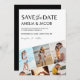 Denna moderna och enkla typografi Foto Collage Spara Datum-kort är perfekt för din bröllopsinbjudan. Denna spara datum-inbjudan har en fotokollage av 6 bilder och enfärgad salviafärg på baksidan.