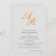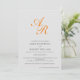 En minimalistisk bröllopsinbjudan med ett elegant beige/guld minimalistiskt monogram. överlägsen kvalitet.