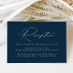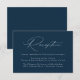 Kort för enkel mottagning och elegant bröllop med "Mottagning" i ett vitt, modernt kalligrafiskript med en solid marin bakgrund (eller färg efter eget val). Anpassa de minimalistiska bröllopskorten genom att lägga till dina mottagningsdetaljer i vita bokstäver. Designad att samordna med vår moderna elegance bröllop-samling.