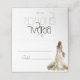 Stilren elegant design med akvarellbrud i sin bröllopsklänning, modern typografi och vårblommor på marmor i bakgrunden. Texten kan enkelt anpassas för en unik design för din speciella dag.