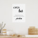 Modern Elegant Calligraphy Black & White Bröllop Open Pub Drinks Sign.