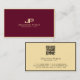 Anpassningsbar Modern Simple Elegant Professionell Design Calligraphy Script QR Code Template Standard Storlek Semi-Gloss Luxury Bordeaux & Guld Affärskort. Perfekt för Real Gods Agent, Accountants, Realtors, Brokers, Attorneys, Lawyers, Läkare, Corporate Professionells, Stylist, Architects, Ingenjör, Directors, Managers, Consultants, Designers, Teacher, Musician, all Professionals.