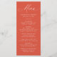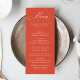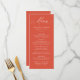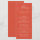 Upptäck din bröllopsmottagning med den här fantastiska bröllop-menyn, med "Menu" i elegantens vita kalligrafi på en vibrant Verona-orangens bakgrund med solnedgång. Den här moderna, enkla och elegant designen gör att par kan anpassa sin meny med namn, datum och måltider i fetstil, vitt. Perfekt för bröllop av alla säsonger. Den här menyn kompletterar både formellt och avslappnad firande och lägger till en popup of färg och sofistikering till din mottagning. Oavsett om du är värd för ett intimt möte eller ett stort evenemang kommer menyn snyggt bröllop att imponera på dina gäster och förbättra matupplevelsen.