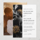 Den här bröllopsinbjudan till eleganten svart och guld blommigt kan vara personlig med din information i modern typografi och ett speciellt foto på motsatt sida. Designad av Thisisnotme©