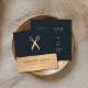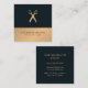 Modernt affärskortsmall med mörkgrå/falskt guld randig bakgrund och saxmönster. Enkel och elegant design. Perfekt för hårstylist, skönhetssalong.