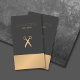 Modern visitkortsmall med mörk grått och faux kopparbakgrund i rand och sax i mönster. Enkel utformning och elegant. Perfekt för hårstilister, skönhetssalon eller mode-relaterade företag.