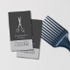 Modern visitkortsmall med mörk grått och silver rand bakgrund och sax mönster. Enkel utformning och elegant. Perfekt för hårstylist, skönhetssalon.