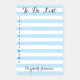 Anpassningsbar, personlig, modern, chic, snyggt, trendigets blå och vita rand mönster, vackert elegant-skript/typografi, numrerad Att göra-lista, hemmakontoret 3M anteckningsblock. Skriv bara in ditt namn/ditt företag/ditt företag namn för att anpassa dig. Du kan också ändra rubriken överst från "Att göra lista" till "Sak att göra" eller någon annan rubrik som du väljer.