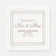 Modern, chic och elegant, papper bröllopsservetter med bridens och brudgummens namn och deras bröllop-datum.