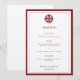 Modern Elegant China Bröllop Champagne Red Menu Inbjudningar