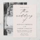 Minimalistisk, modern bröllopsinbjudan som innehåller dina bröllop-detaljer i ett vanligt svart brev med "bröllop av" i ett kalligrafiskt skript för elegant med en grå beige bakgrund. Inbjudan går tillbaka till visningen av förlovningen lodrät. Designad att samordna med vår moderna elegance bröllop-samling.