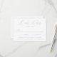 Minimalistiskt, modernt bröllop OSA-kort med ditt OSA-datum, anpassningsbarna accepterar/avvisar formuleringar och måltider. "Vänligt svar" visas i ett dammigt blått kalligrafiskt skript. Det dammiga blåskript-bröllopet OSA var designat att samordna med vår Modern Elegance bröllop-samling.