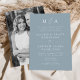Modern Elegant Dusty Blue Monogram Photo Bröllop Inbjudningar