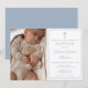 Modern Elegant Dusty Blue Photo Baptism Inbjudningar