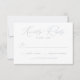 Minimalistiskt, modernt bröllop OSA-kort med ditt OSA datum och anpassningsbarna godkänner/avvisar formuleringen. "Vänligt svar" visas i ett dammigt blått kalligrafiskt skript. Den vita bakgrunden kan ändras till en valfri färg. Den dammiga blå OSA kort var designad att samordna med vår moderna elegance bröllop-samling.