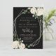 Den här moderna elegantens inbjudan till bröllopsbröllopet är en perfekt för ett blommigt i det oändliga bröllop. Konstruktionen har vitblommor av elfenbensfärg ro med grönt eucalyptus löv som är väl placerad i öga-infångande buketter. Spara papper genom att på baksidan av inbjudan ange mer information i stället för på ett separat visitkort.