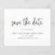 Modern svartvit budget Spara datumet med en enkel design med "spara datumet" i ett elegant med ett tunt handskriftsskript. En chic- och snyggt-design för att meddela datum för ditt kommande bröllop.